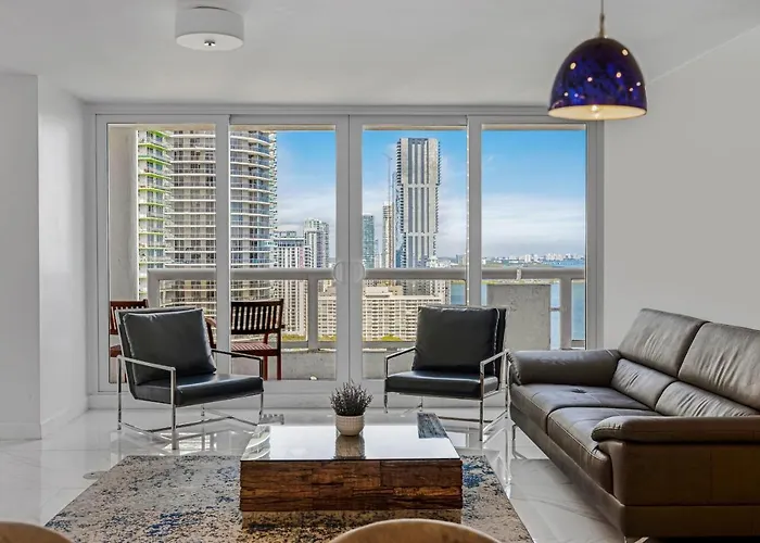 El apartamento ofrece alojamiento en el barrio Centro de Miami, a tan solo 1 km del Bayside Marketplace. Los huéspedes pueden llegar fácilmente al Aqua-Jet Miami, situado a unos 5 minutos a pie.